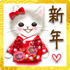 ねこが可愛いですね。そのねこが着物を着て年明けをお祝いしている。猫好きにはたまりませんね。