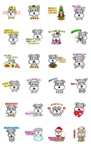 ミニチュアシュナウザーの年末年始スタンプ♪お正月の挨拶に◎まー より発売