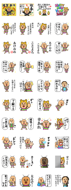 既読虫の2022年寅年のお正月・年末年始スタンプです。毎年使えるスタンプも多数入っています。