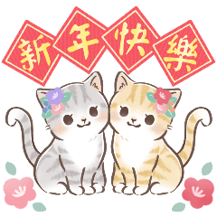 人気クリエイターerisanの旧正月・春節向けスタンプ。茶トラ、サバトラ、白猫、シャム猫が新年をお祝い♪よく使う挨拶や返答も揃った中国語(繁体字・台湾華語)スタンプです