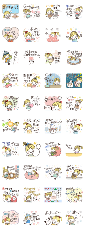 かしこまりすぎずに楽に使えるゆるい絵柄のスタンプです。年末年始と冬の日常ver♪ 年号フリーで毎年ずっと使用できます。お正月/あけおめ/大人かわいい/女の子/敬語/2022