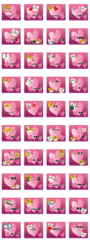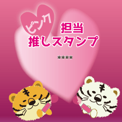 推しの名前が入れられる名前スタンプ。ピンク色担当応援、ピンク色推しの人向けラインスタンプ。2022年(令和4年)の干支は寅年(トラ年)まめとらシリーズ