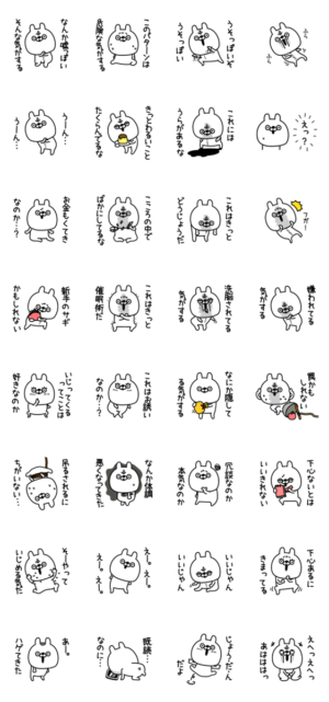 84個目です。シンプルな言葉が多めのウサギです。絵文字もあります。type-E より発売