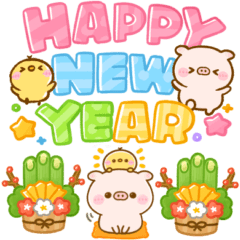 毎年使える♪大人可愛い♡ちいさなこぶたのぽこちゃんのカラフル可愛いスタンプです。ぴよたぬき より発売