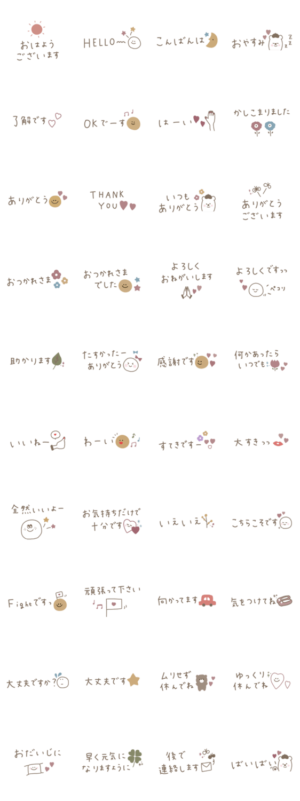大人女子でも使いやすい、お洒落なくすみカラーでまとめたシンプルなスタンプです。気持ち♡お気遣い言葉。敬語入り。省スペース。