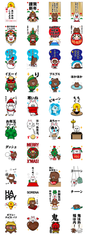 ブラウン/コニー/サリー/LINEキャラクターズ/毎日使える/日常会話/挨拶/大人向け/お正月/謹賀新年/新春/大晦日/あけおめ/2022年/BIGスタンプ/ビッグスタンプ ※BROWN & FRIENDS をみんなでつくろう!キャンペーン参加スタンプです4A-Studio(よんえーすたじお) より発売