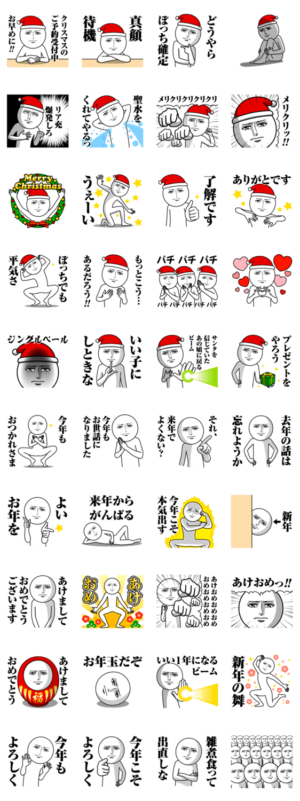 真顔なスタンプをクリスマス・お正月にどうぞ。メリクリ! あけおめ!センジュ より発売