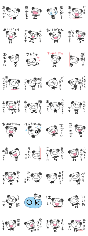 「さんきゅ」「感謝です」から「いつもありがとう」まで。ふんわかパンダで、たくさんのありがとうを届けよう。家族、学校、お仕事でも。