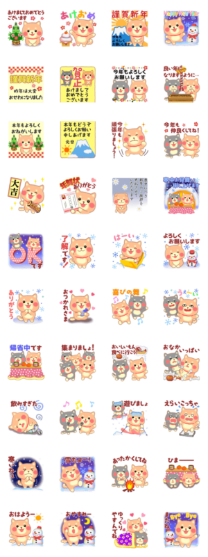 「賀正」「謹賀新年」「あけおめ」「今年もよろしく」など、新年のご挨拶に お使いいただける 柴犬の お正月スタンプです。めぐみん より発売