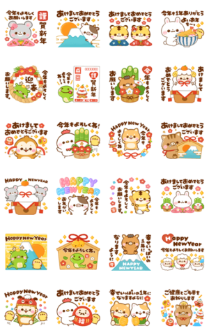 かわいいキャラのお正月スタンプです。素敵ですね!24種類ダウンロードできるのは良いですね!