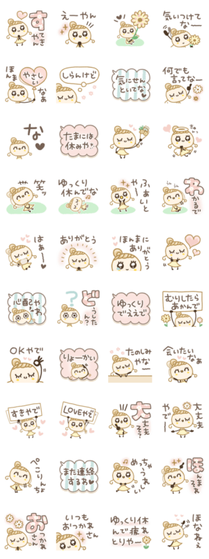この関西弁のスタンプは確かに癒される。癒しの関西弁をうまく使ってると思います。恋人同士なら彼女にプレゼントしたらいいと思います。