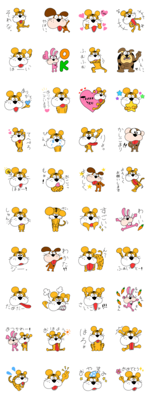 虎がメインのえまフレンズ よく使う言葉がたくさん!会話に添えてみてください。 虎 寅 干支 2022 動物 犬 うさぎ 猿 ブルドッグEmma より発売