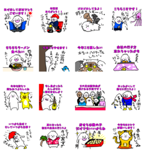 お正月や冬に使いたいペキちゃんのゆるかわスタンプです。カスミとエリコ より発売