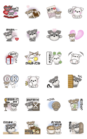 ミニチュアシュナウザーのほのぼのと気持ちを届けるスタンプです。ぽてこ より発売