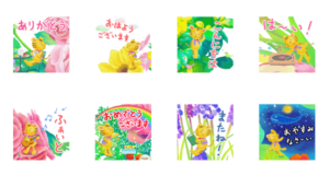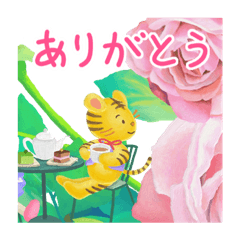 イラストレーター「くぼりえ」が描いたコトラさんと花のスタンプ。2022年は、寅年ということで虎を描いてみました♪