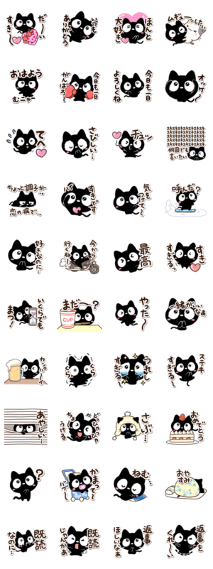 『クロネコすたんぷ』の、大好きな人へ送る猫スタンプ。恋人、夫婦、バレンタイン等、思いを伝える、くろねこスタンプ。ちいさくて、かわいい黒猫スタンプです。【かたこ】かたこ より発売