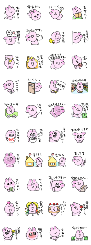 シュールなミニうさぎの家族に送るスタンプです。eribo より発売