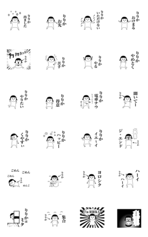 リリカくん、リリカさん、リリカちゃんが使う動く面白名前スタンプ。