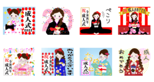 S/ロングヘア赤いリボン2022成人式 スタンプ情報