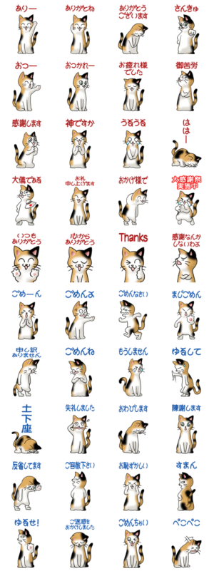 ちょっとリアルな猫ちゃんが感謝と謝罪をしているスタンプです(∩´∀`)∩