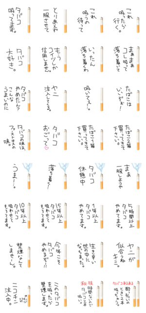 タバコと共に一言添えられたスタンプです(^O^)健康に注意です。