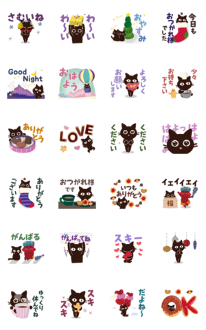 ナチュラルで絵本みたいなネコ[冬の気づかい]Ver。寒い冬にぴったりの大人可愛いスタンプ!チョコやクッキー等バレンタインのハートモチーフもたくさん!好きな人に!