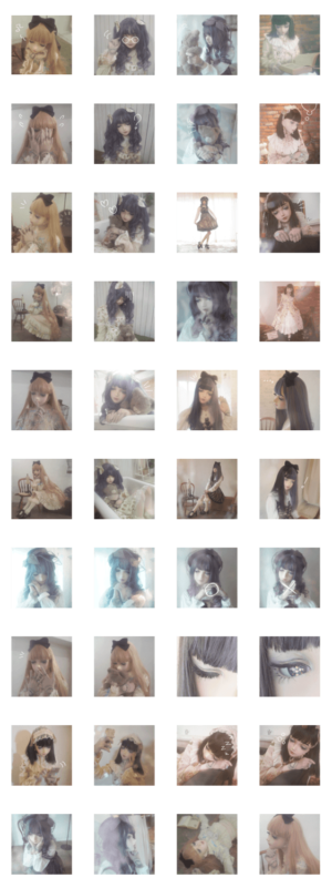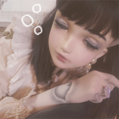 球体関節人形のスーツを纏うドールアーティスト、橋本ルルのフォトスタンプです。エレガントな気分のときに。millna より発売