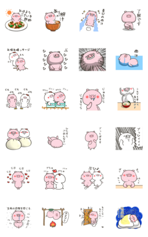 もんちゃんのスタンプから生まれたぶたさんがまたまた動きました。ゆる~いダジャレまじりで時に激しく時にキモい、だけどもカワイイ色々と使いやすい豚さんスタンプです♪
