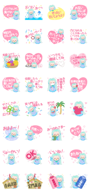癒しのアマビエちゃんスタンプの第2弾! 応援メッセージで皆に元気と笑顔を~♡ コロナなんかに負けないぞ~!