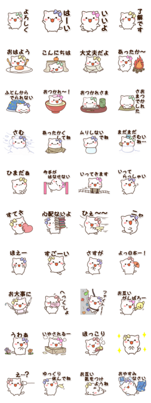 ぽっちゃりした、白い猫のスタンプです。冬や寒いとき、恋人、友達を気遣うときにも使える、便利なネコスタンプ。家族連絡にも使える、ねこスタンプです。【かたこ】かたこ より発売