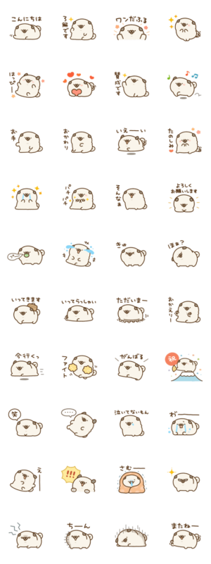 まるっとしたゆるいパグさんのスタンプ2作目です。かやぬ ゆみ より発売