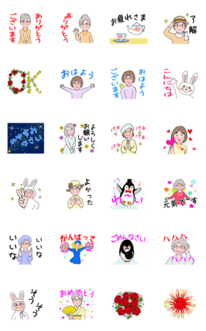 シニア女性の魅力が伝わってくるスタンプだと思いました。素敵です