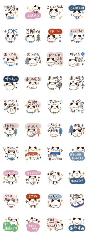 おしゃれかわいい落ち着いた雰囲気の、ちいさいブチ猫スタンプ。北欧風、ガーリータイプで、よく使う言葉を集めた、ちいさいネコスタンプ。ねこ好きの方にぜひ。【かたこ】かたこ より発売