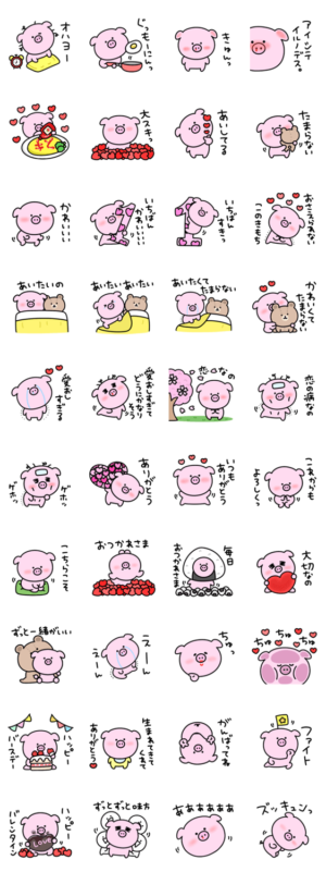 シュールなミニぶたの好きという気持ちを伝えるスタンプです。eribo より発売