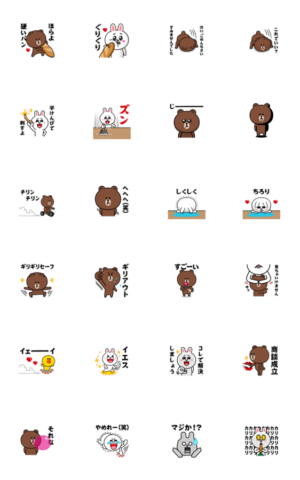ブラウン/コニー/ムーン/サリー/LINEキャラクターズ/毎日使える/日常会話/挨拶/大人向け/恋人/カップル/ラブラブ/好き/愛/男女/彼氏彼女/田舎/自由奔放/はらぺこ