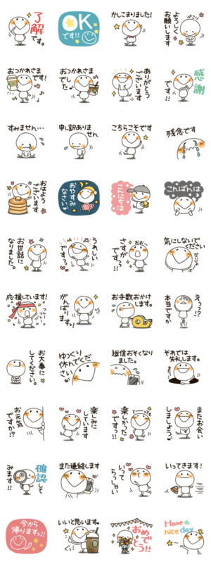 まるぴの第五弾!敬語バージョンです。先輩、上司、目上の人や、グループトークで使いやすいスタンプ。かなぴ より発売