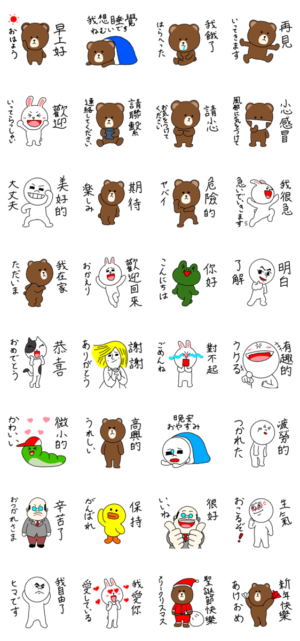 BROWN & FRLENDS中国語スタンプのダウンロードはこちら↓