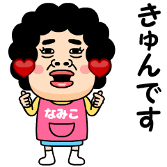 母なみこ(ナミコ)からのビデオレターがディフォルメ化&おばさん化して新登場!パーマにエプロン姿の典型的なオバサンスタイル!芋ジャージの名前スタンプのくーが作