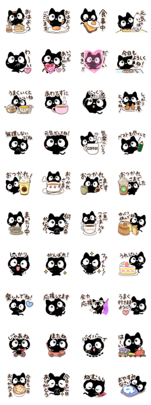 『クロネコすたんぷ』の相手を思い労わる【応援・気づかい】編です。好きな人や、家族、友達など身近な人へ励ましのメッセージを送ることができる黒猫スタンプ。【かたこ】かたこ より発売