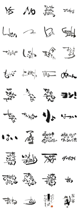ぱらの筆文字スタンプ。 筆文字スタンプです。よく使う言葉を集めてみました。ぱら より発売