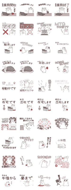 仕事が出来そうなハムスターですね。頼もしさと可愛さが溢れ出ていてやさしいスタンプだと思いました。
