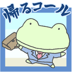 蛙(かえる)の帰るコールポップアップスタンプ。会社員、愛妻家、社畜、学生さんへ!今から帰るなど、帰る時に家族に送る帰宅連絡に便利。お疲れ様等の返事のおまけ付きstudio ケロ より発売