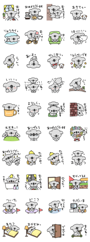 シュールなミニコアラの毎日使う言葉スタンプです。eribo より発売