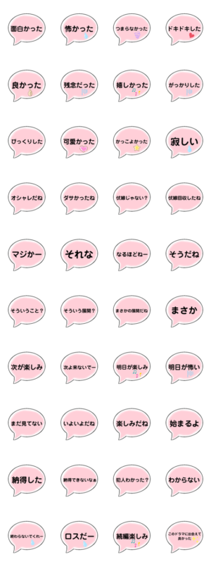 ドラマ受けするときに使えるスタンプです。ドラマの展開予想や、ドラマの余韻に浸りたいときに使ってください。このスタンプでたくさんドラマ受けしちゃいましょう!Kinchan より発売