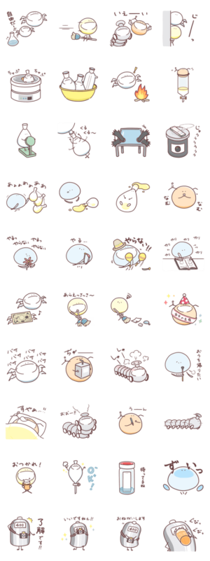 有機溶媒がキャラクターになった「そるべんつ」が初登場。研究室や学生生活をちょっと楽しくしてくれるスタンプです。おやすみん より発売