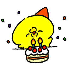 「誕生日おめでとう」や「あけましておめでとう」など色んなお祝いメッセージを伝えられるヒヨコのスタンプだよ。