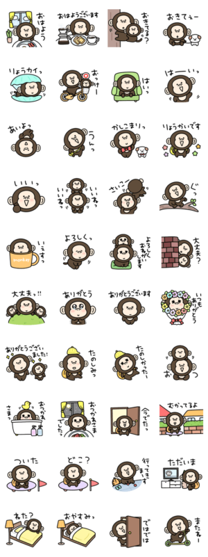 シュールなミニ猿の毎日使う言葉スタンプです。eribo より発売