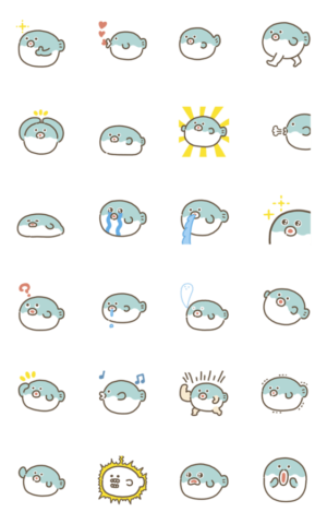 ゆるい河豚のアニメーションスタンプです。ふぐ/海/魚/水族館/アクアリウム/動く/どうぶつ/アニマル/動物/シュール/ユニーク/かわいい/シンプル/ゆるかわ/面白い/日常くぱべる より発売