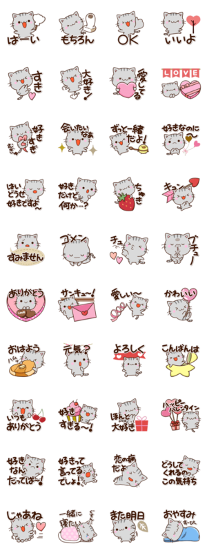 【ちびアメ】のアメリカンショートヘアの、恋人、夫婦、バレンタイン等、好きな人に思いを伝える、ねこスタンプです。かわいいネコが気持ちを代弁します。【かたこ】かたこ より発売