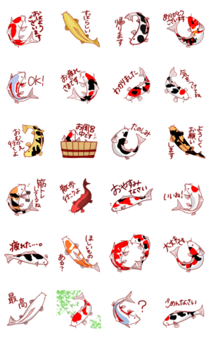 泳ぐ宝石の錦鯉をモチーフにしたスタンプです。のぞみ より発売